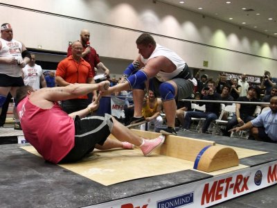 Мас-рестлинг же был представлен в Strongman Combat. Американские силачи и многочисленные зрители впервые познакомились с нашим мас-рестлингом. В итоге жестоких схваток в полуфинал вышли Харрисон против Оберста и Руд против Палмер. Далее в финале сразились Оберст и Руд. Сильнейшим в мас-рестлинге стал Руд.